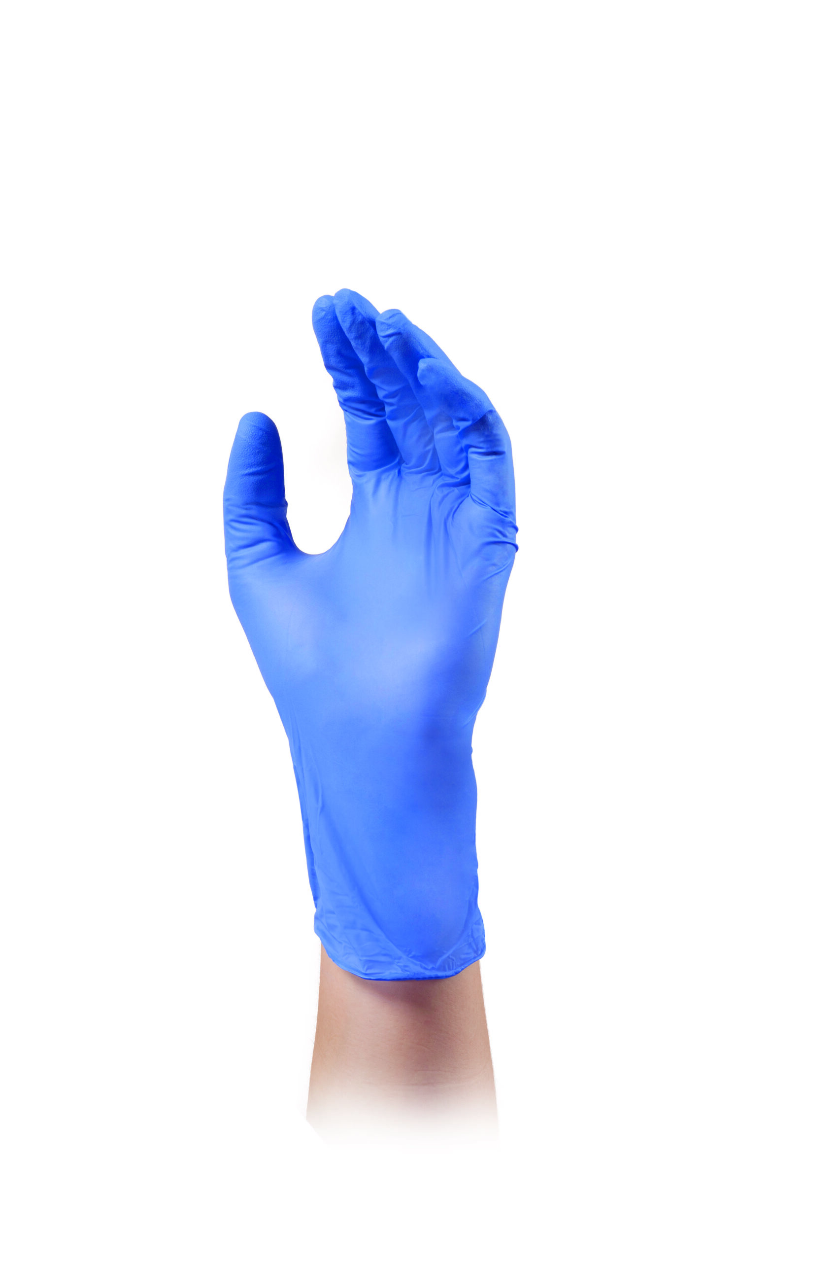 Latexfreie Einmal-Untersuchungs- und Schutzhandschuhe aus weichem, blau gefärbtem Nitrilkautschuk, puderfrei, mit extra langer Stulpe für optimalen Schutz, durch chlorierte Innenbeschichtung leicht anzuziehen, texturierter Fingerbereich für optimale Griffigkeit, hochelastisch und besonders reißfest, hervorragende Passform und ausgezeichnetes Tastempfinden, links und rechts zu tragen.