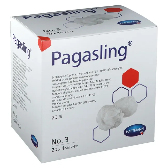 Schlinggazetupfer aus Verbandmull DIN EN 14079, 20-fädig; der aus nur einem Mullstück gefertigte Tupfer ist so verschlungen, dass die Schnittkanten sicher im Inneren liegen; mit hohem Absorptionsvermögen.