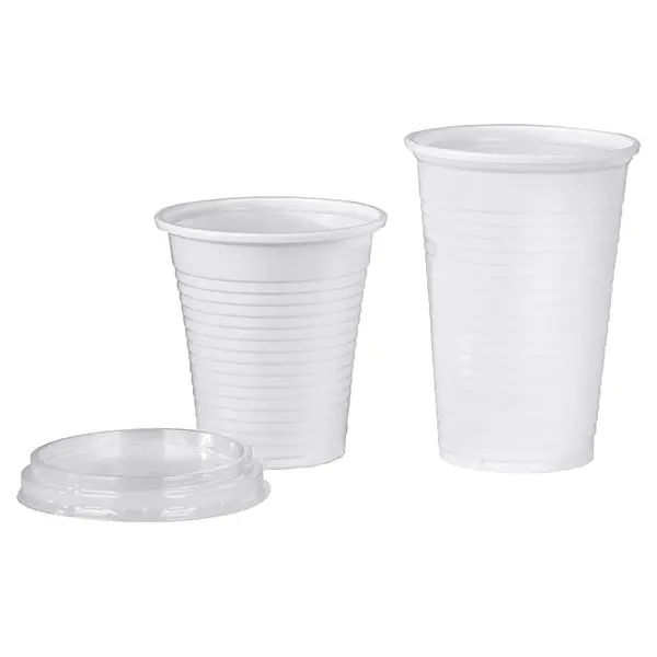 Weiß, verwendbar als Trink-, Sputum- oder Urinbecher, bruchfest. Aus Polypropylen.
