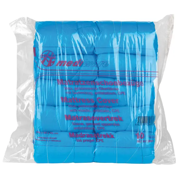 Aus blauer Kunststofffolie. Für Formate bis 100 x 210 cm, mit Gummizug, für Intensivstationen, Altenheime, etc.. Antistatische Qualität.